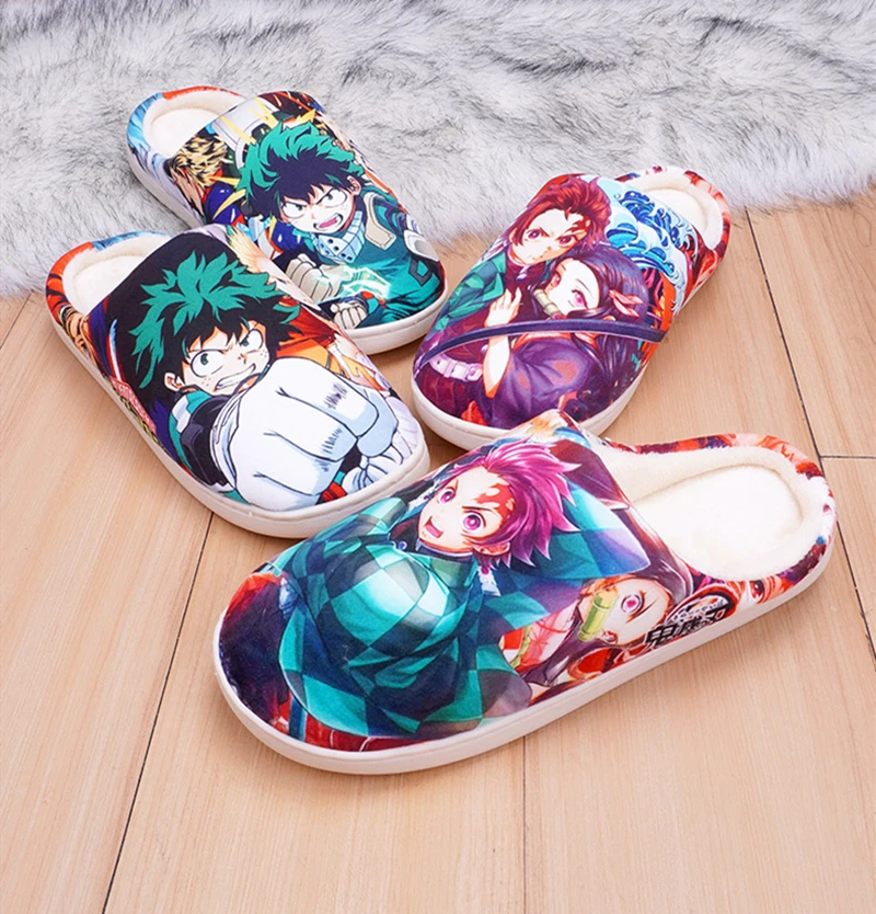 Proion Winter Warm Anime Slippers For Men Women Kids Girls My Hero Academia Midoriya Izuku Bakugou Demon Slayer Cosplay Cute Shoes